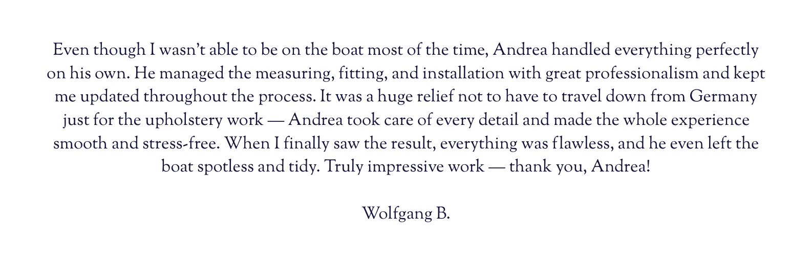 More than 25 years ago, a big passion for sailing and upholstery was born between the Italian and Slovenian coast. Since then, a desire for knowledge has taken us on a journey all around the world. Today we are back home in the North Adriatic where you can consult us about your wishes and ideas.